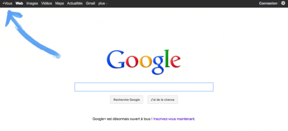 Ce matin, si vous vous rendez sur Google.fr, il est impossible de manquer le doodle sur sa page d’accueil qui invite à s’inscrire sur Google+. Google utilise avec beaucoup de réussite une grande flèche bleue qui s’affiche progressivement sur votre écran. Elle pointe vers +Vous si vous n’êtes pas encore membre du réseau social ou +votrenom si vous en faîtes déjà parti.