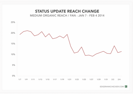 Dans une étude publiée hier, Edgerank Checker révèle non seulement le taux de portée mais aussi le taux d’engagement avant et après le 21 janvier, suite à l’analyse de 50 000 publications émises par 800 Pages différentes.